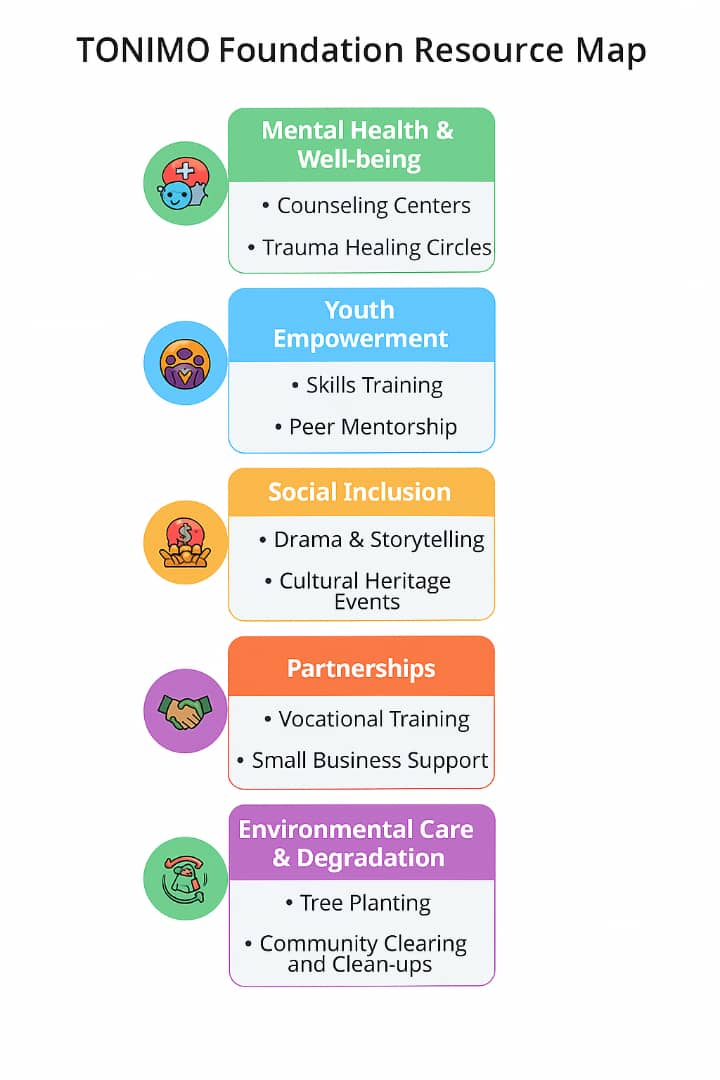 Through this program, TONIMO Foundation places youth at the heart of healing and change in Alebtong. By building resilience, promoting mental well-being, and equipping young people with practical skills, we are nurturing a generation that will transform trauma into leadership, despair into hope, and exclusion into lasting inclusion.